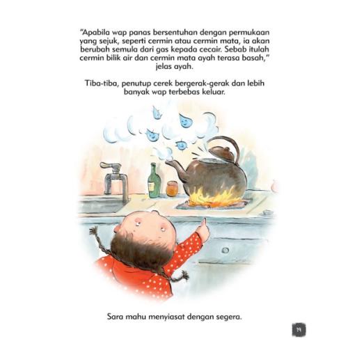 Detektif Sara menemui keajaiban air dalam tiga keadaan, pepejal, cecair, dan gas. Ketahui cara Sara menyusun petunjuk dan kamu juga akan menemui air dengan cara baharu!