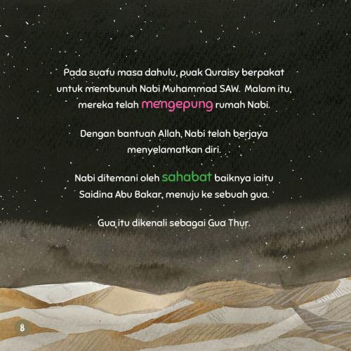 Kisah bermula apabila ada pakatan jahat puak Quraisy mahu membunuh Nabi. Kemudian, Nabi bersama sahabat baiknya, Abu Bakar menuju ke Gua Tsur. Mereka berlindung di dalam gua yang kecil dan sempit itu.
