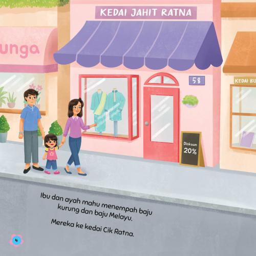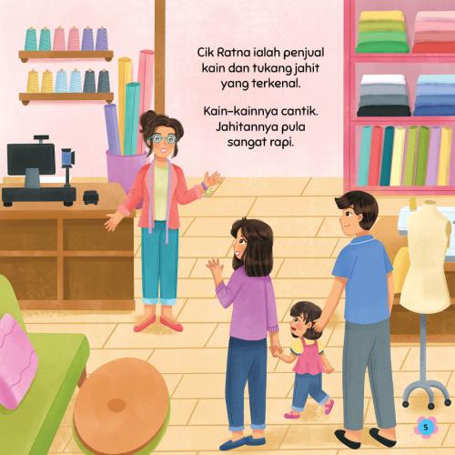 Zara masuk ke dalam sebuah kedai yang penuh dengan pelbagai kain yang cantik. Ada batik, songket, brokat dan banyak lagi!